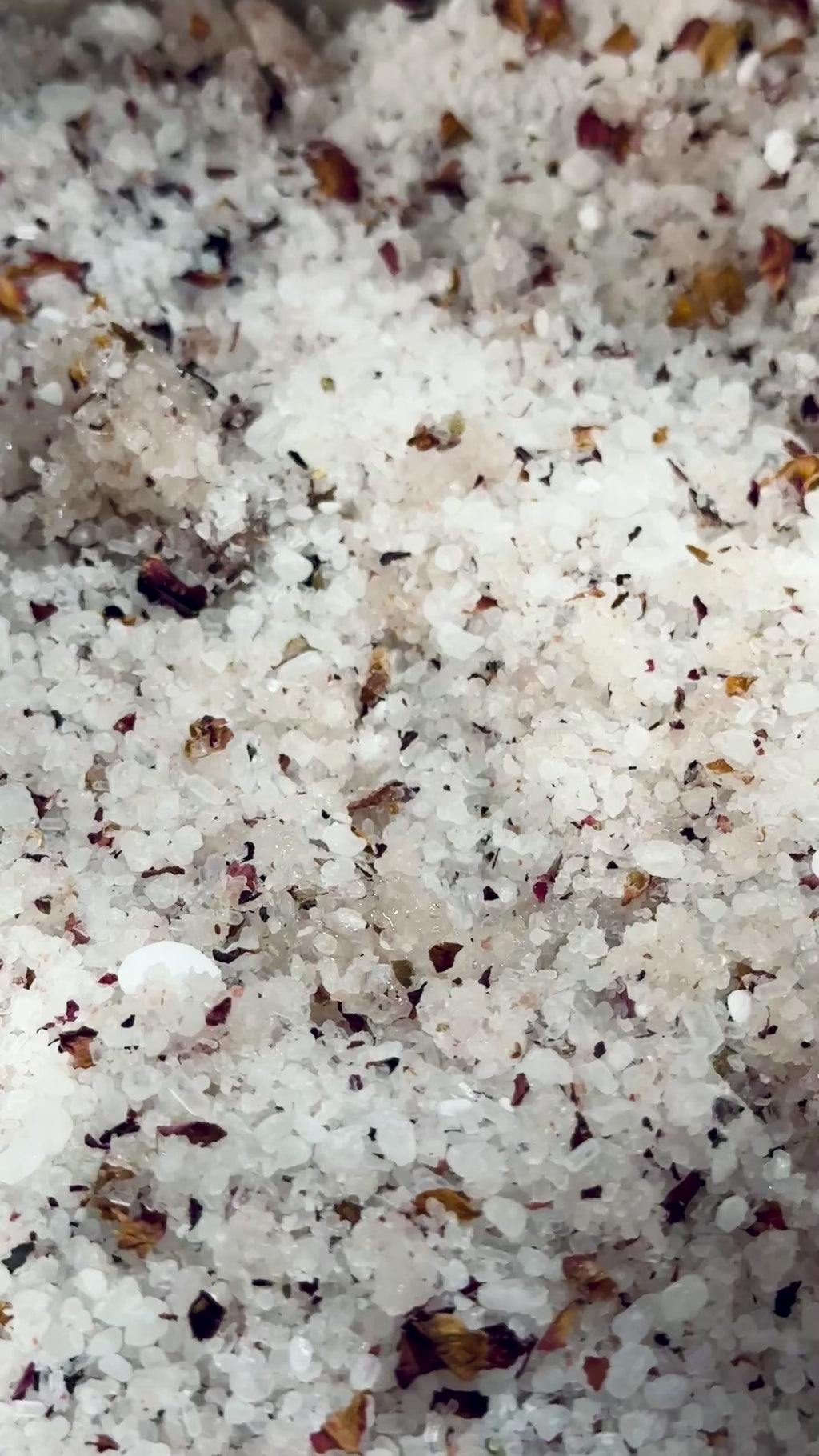 Ingredients: Epsom salt, dead sea salt, citric acid, pink himalayan salt, baking soda, dried rose petals, fragrance